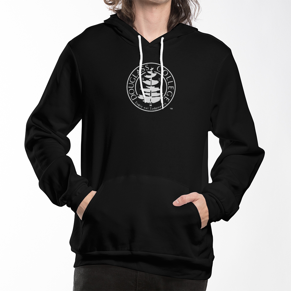 Douglass College Seal - Black Bella + Canvas Pullover Fleece Hoodie - 2