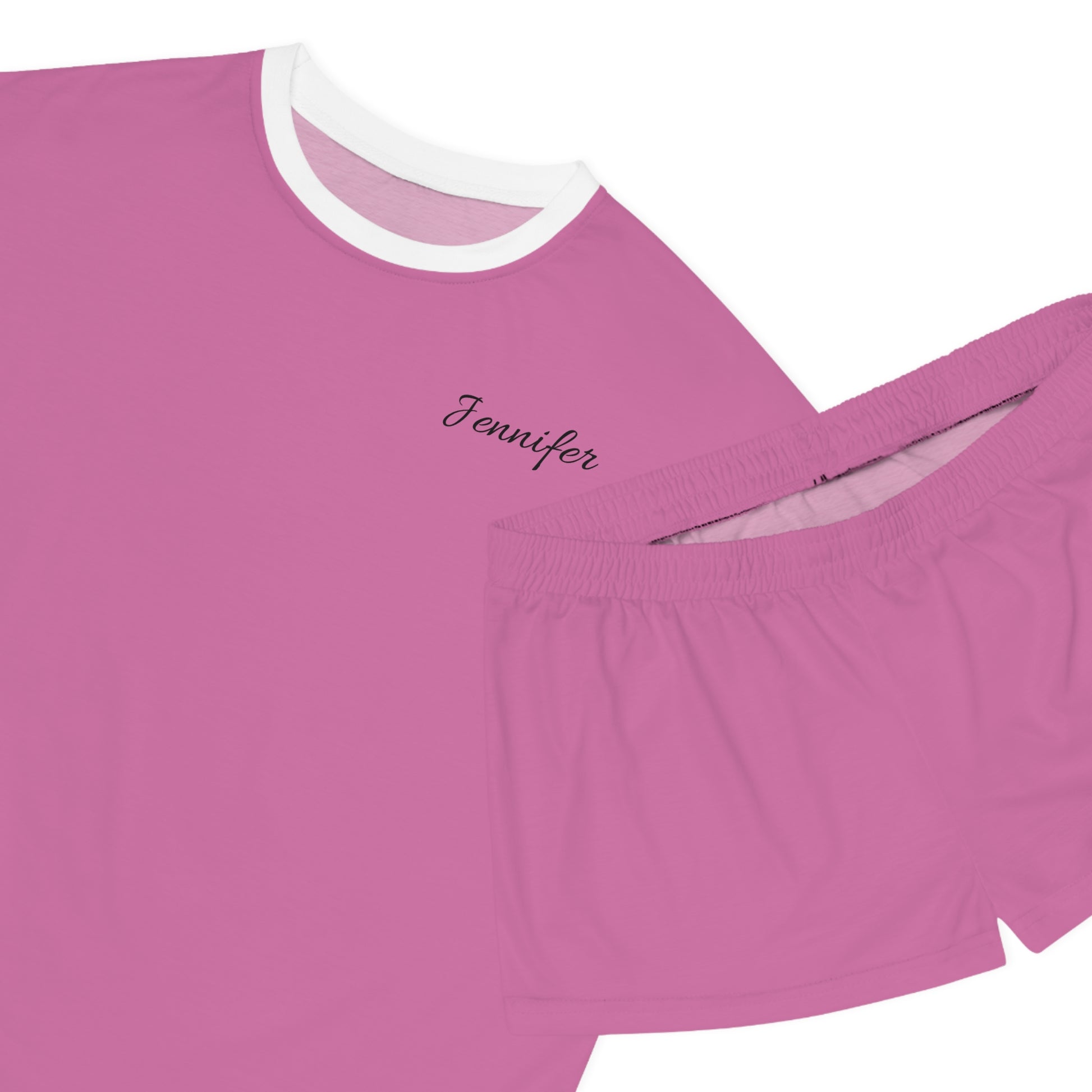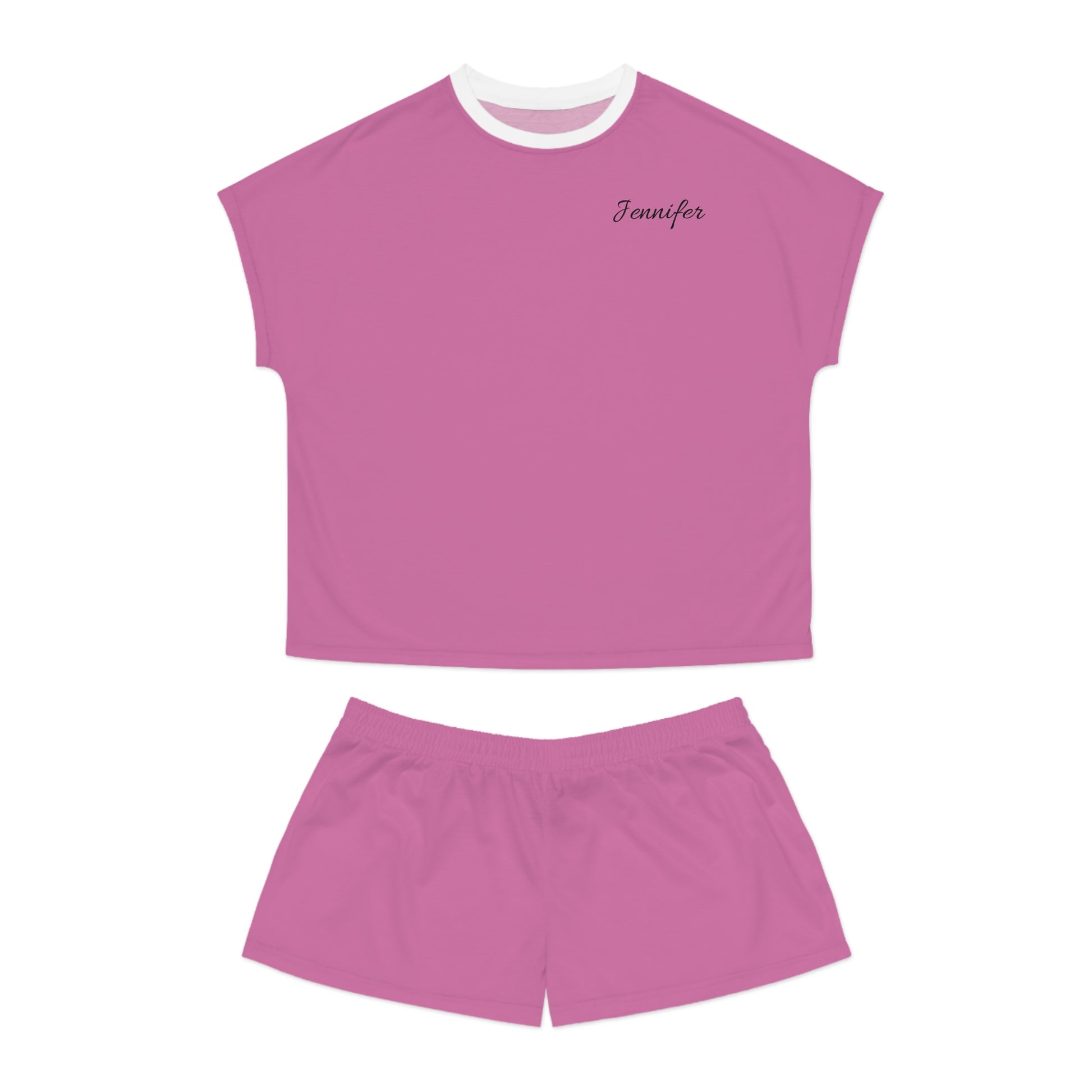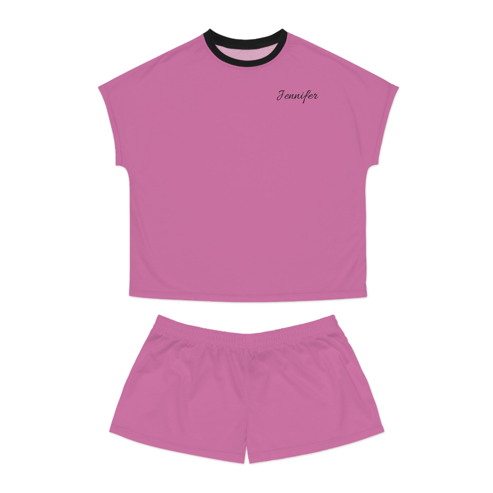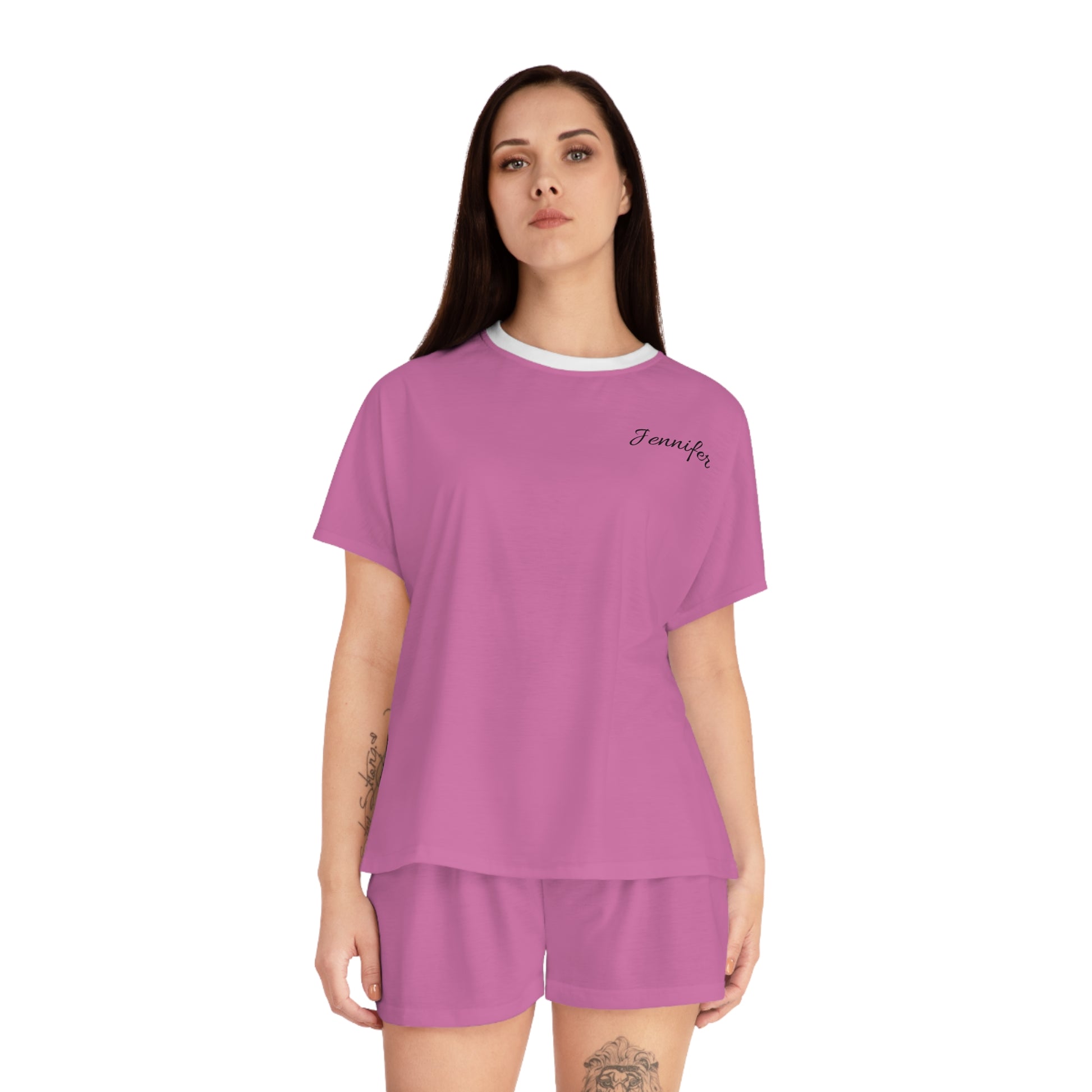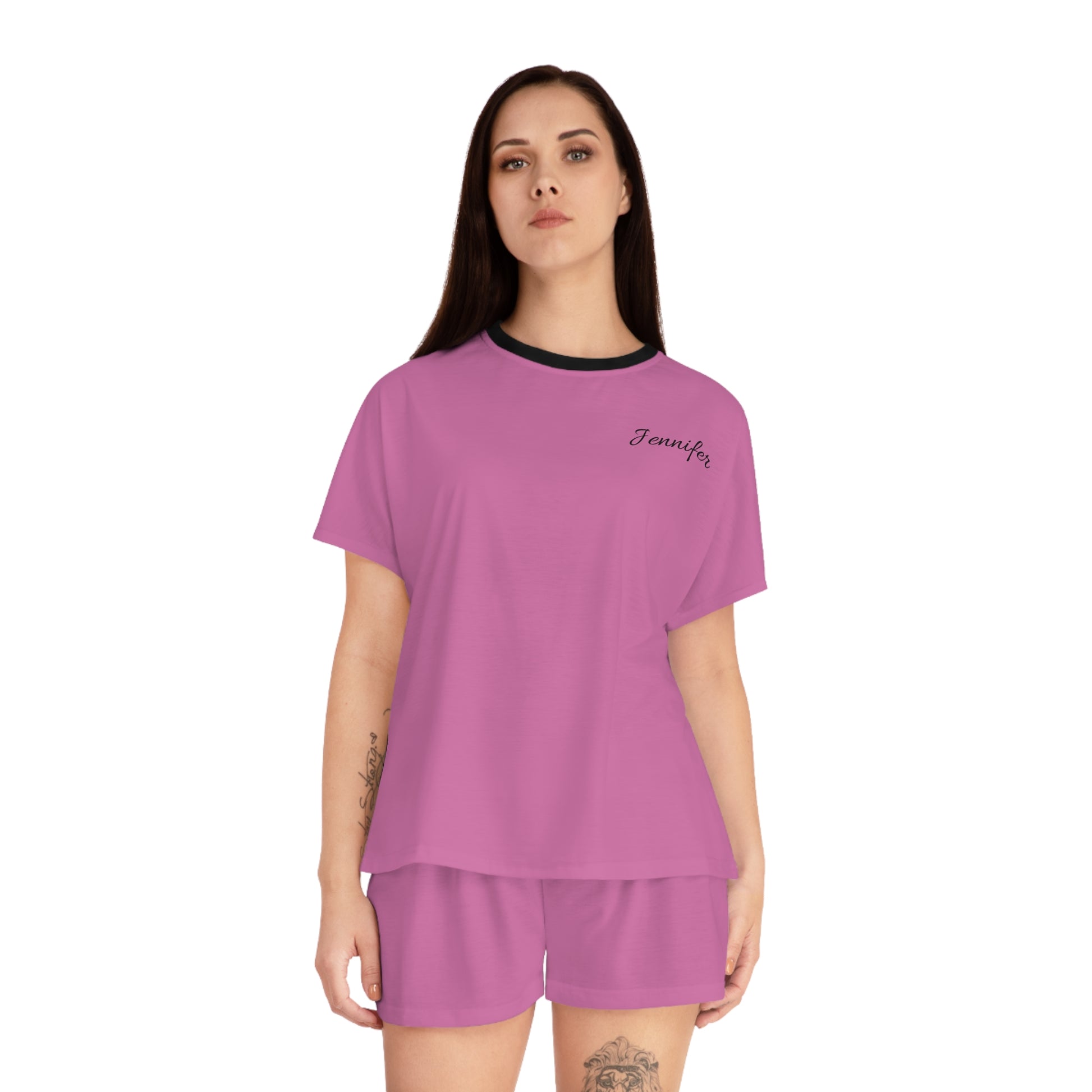 Why pick between comfort or style when you can have both? These women's short pajama two-piece set come with a relaxed fit, a ribbed collar and feature no sleeve seams. all-over print, and create a cozy staple that is bound to be loved. Personalize this with your name or your bridesmaids name. A perfect gift for the bachelorette party/girl's night pajama party.