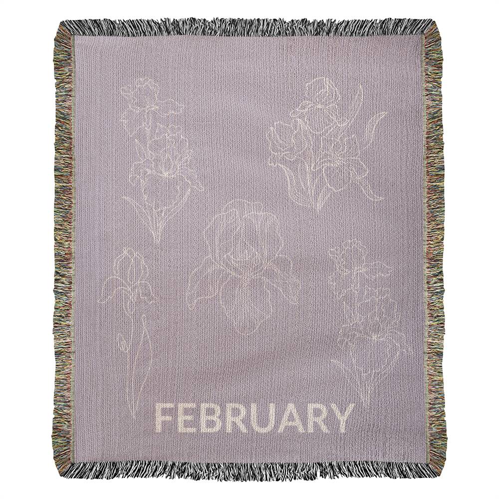 Plum - February - Iris Heirloom Birth Month Flower Woven Blanket
