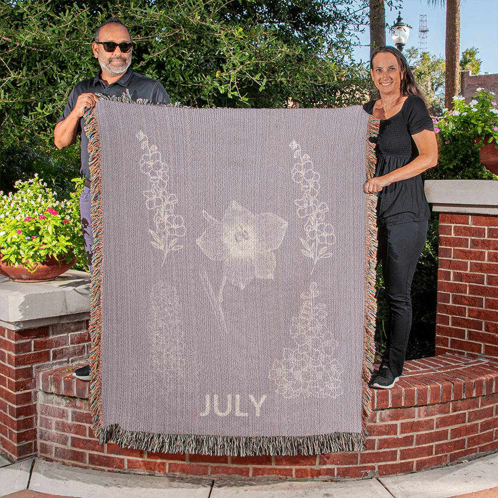 Plum - July - Larkspur Heirloom Birth Month Flower Woven Blanket
