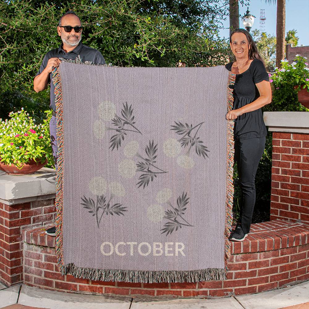 Plum - October - Marigold Heirloom Birth Month Flower Woven Blanket