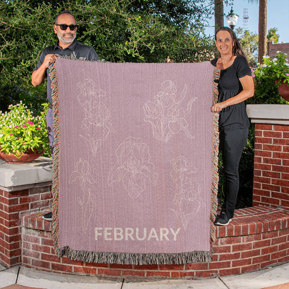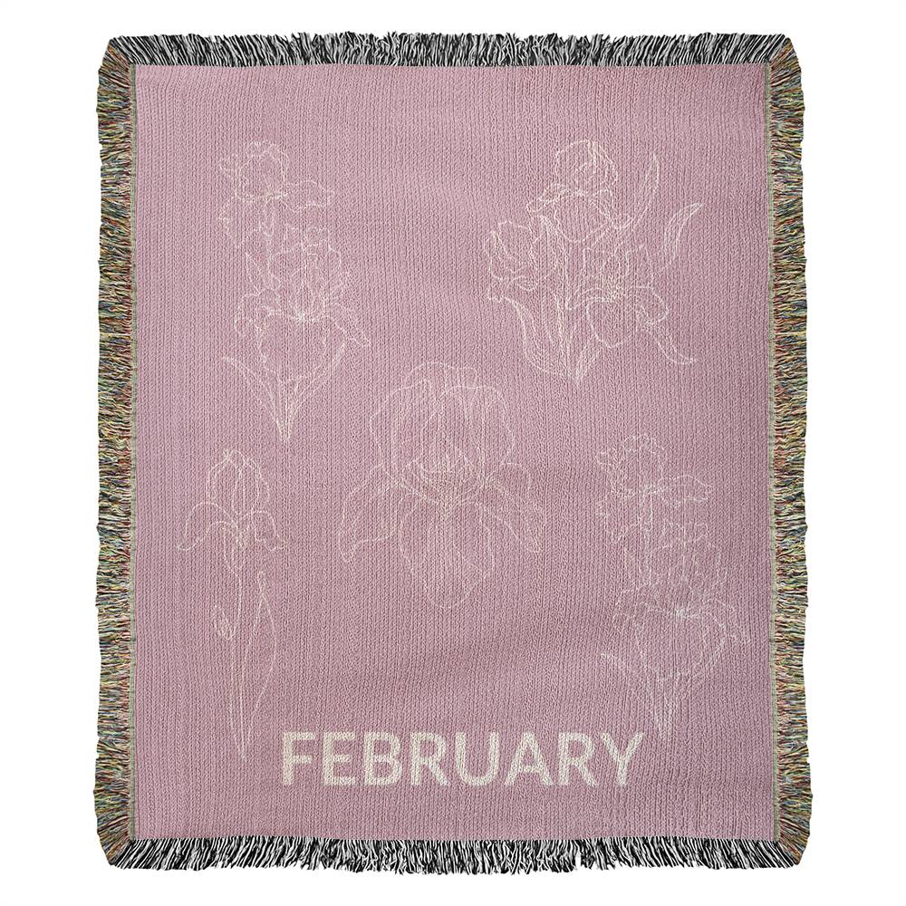 Rose - February - Iris Heirloom Birth Month Flower Woven Blanket